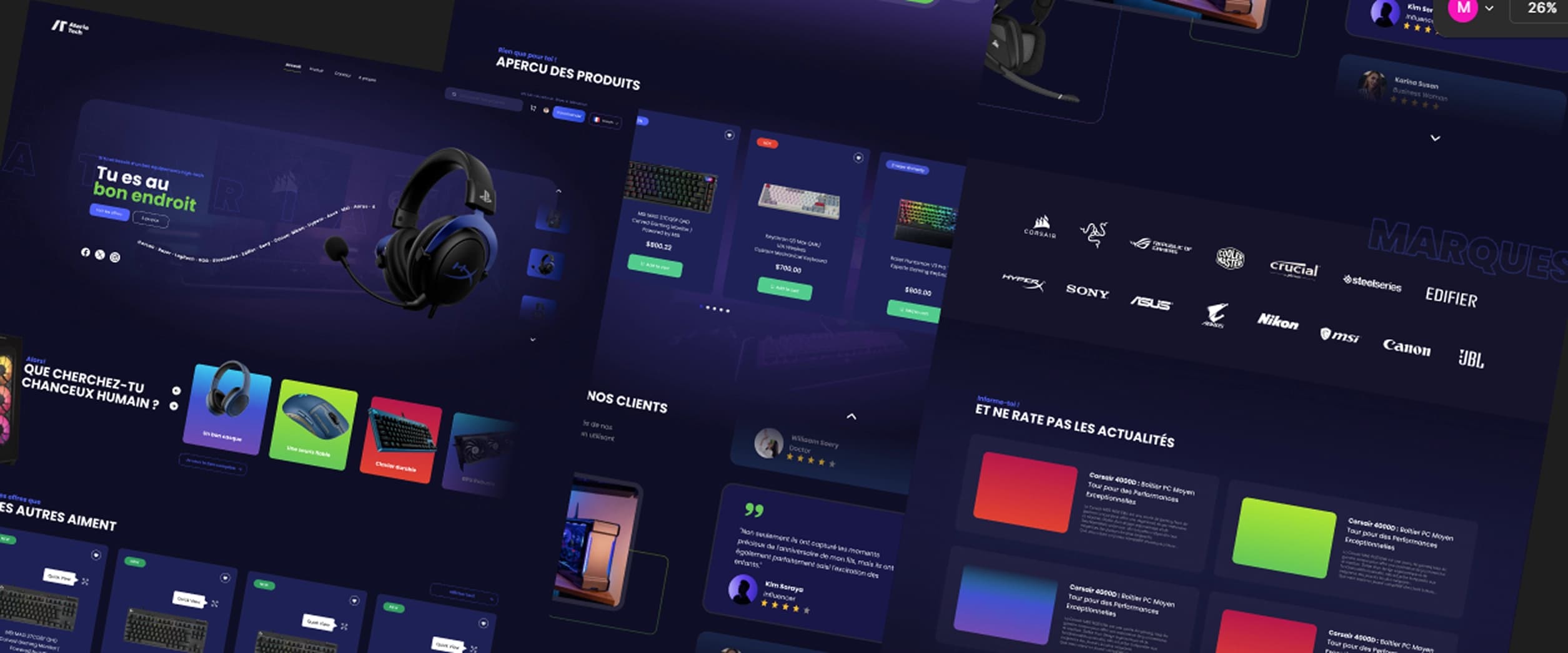 Un site e-commerce développé pour "Ataria Tech" permettant la vente de matériel informatique. Il offre un catalogue dynamique et intuitive pour simplifier les achats des clients