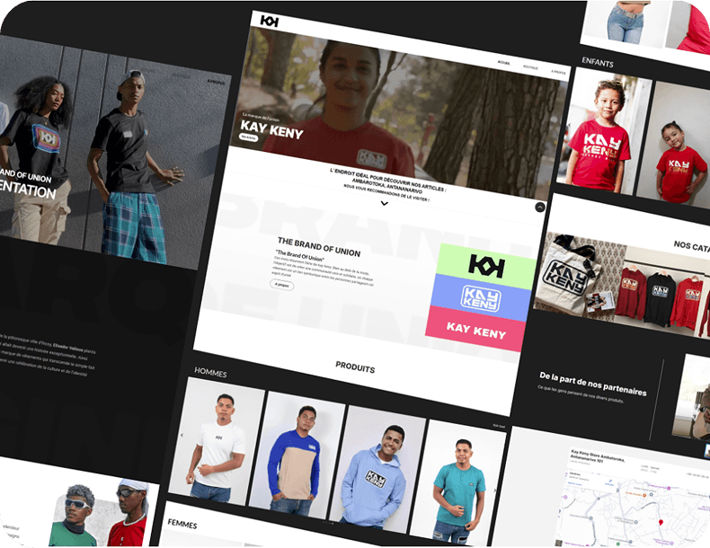 Un site vitrine conçu pour KayKeny afin de présenter son entreprise, ses créations et son catalogue de vêtements pour renforcer sa présence en ligne